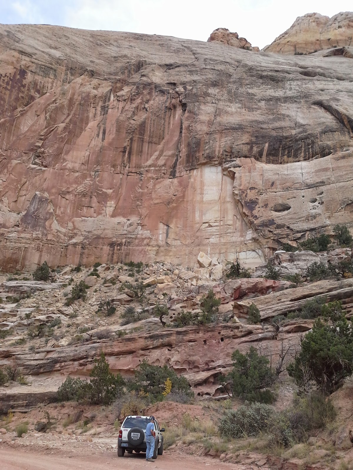 To give you some perspective on how high these towering walls are. There's Gary and the Jeep in the very bottom of the photo.